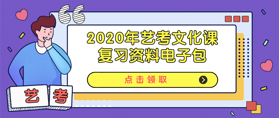 點擊鏈接:https://jinshuju.net/f/SRTEg1或下方圖片可獲取 2020年藝考文化課復習資料電子包
