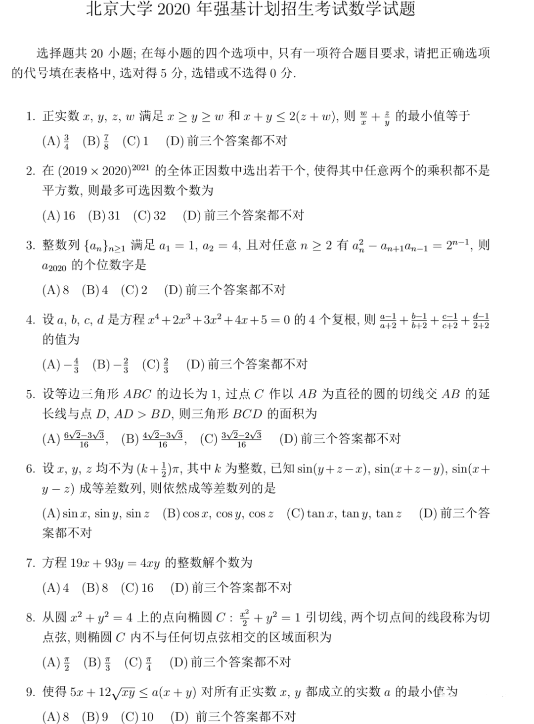 點(diǎn)擊領(lǐng)取>>>2016-2020強(qiáng)基計(jì)劃試題及答案