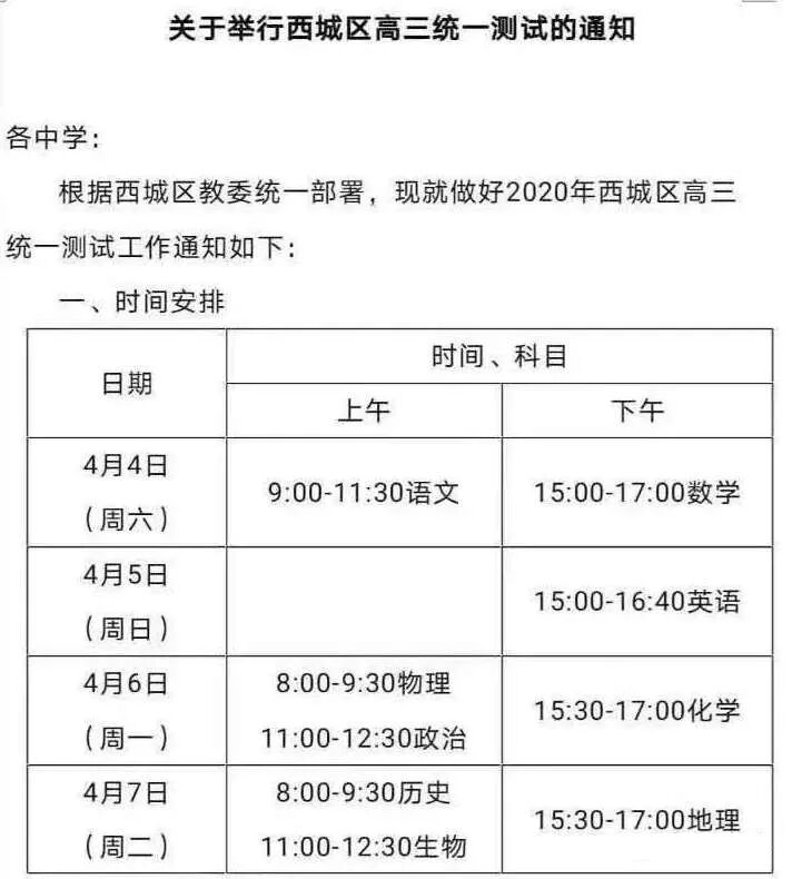 2021年西城區(qū)高三一模診斷時(shí)間還未公布,我們可以參考2020年的一模時(shí)間,在4月4日-7日(周六至周二)。